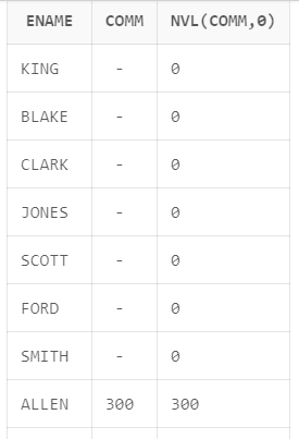 SELECT ENAME, COMM, NVL(COMM,0)